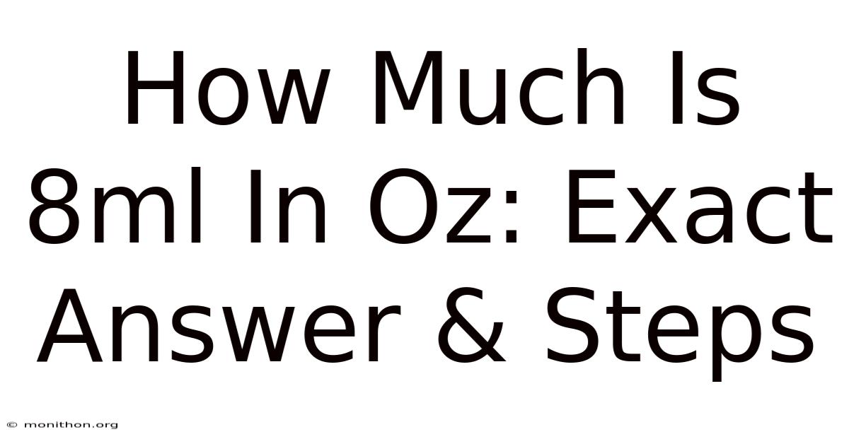 In plain speak, 8 milliliters equals about 0.27 fluid ounces. If you’re used to measuring in cups or pints, the conversion might feel counterintuitive, but once you remember the 1 ml ≈ 0.That said, that’s a quarter of an ounce—so small it can fit in the tip of a syringe or a few drops of essential oil. 0338 oz rule, the math becomes a breeze Took long enough..