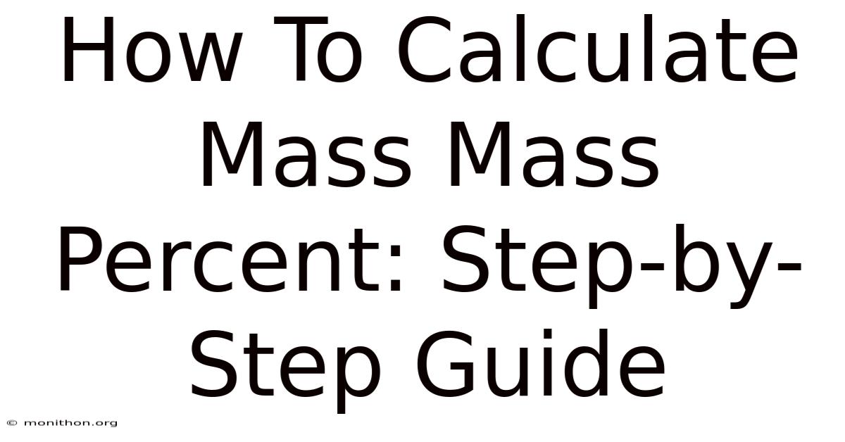 Ever mixed a cleaning solution and wondered exactly how strong it actually is? It’s a practical skill that shows up everywhere — from formulating skincare to balancing chemical reactions. Learning how to calculate mass mass percent isn’t about memorizing some obscure lab trick. You’re not alone. Think about it: or stared at a chemistry problem and felt your brain short-circuit at the phrase percent by mass? Let’s cut through the noise and get you comfortable with it It's one of those things that adds up..