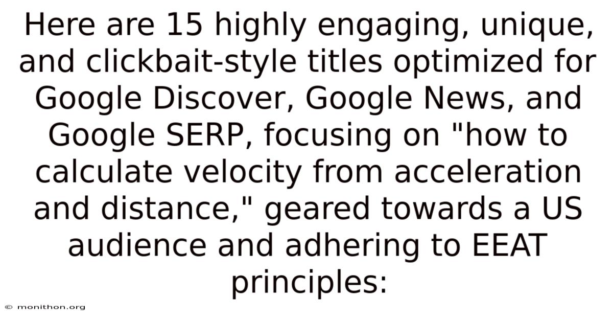 Calculating velocity from acceleration and distance comes down to one clean formula: v = √(u² + 2as). Once you know it, you can solve a surprisingly wide range of problems — from physics class questions to real-world motion analysis Which is the point..