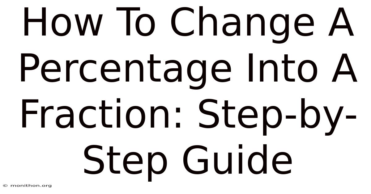 The truth is, percentages and fractions are two ways of expressing the same idea: parts of a whole. Worth adding: a percentage is literally a fraction with a denominator of 100. So when you see 25%, it’s the same as 25 out of 100, or 25/100. That’s the foundation of how to change a percentage into a fraction. But it’s not just about writing it down—it’s about simplifying it to its most basic form. That’s where most people get tripped up Not complicated — just consistent..