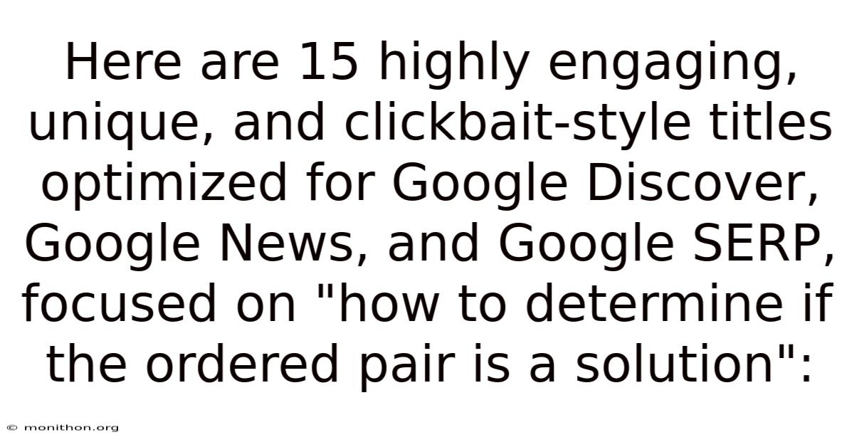 An ordered pair is just a pair of numbers written in parentheses like (x, y). The first number is x, the second is y. When we say an ordered pair "is a solution" to an equation, we mean that if you substitute those numbers into the equation in the right places, the equation holds true That's the whole idea..