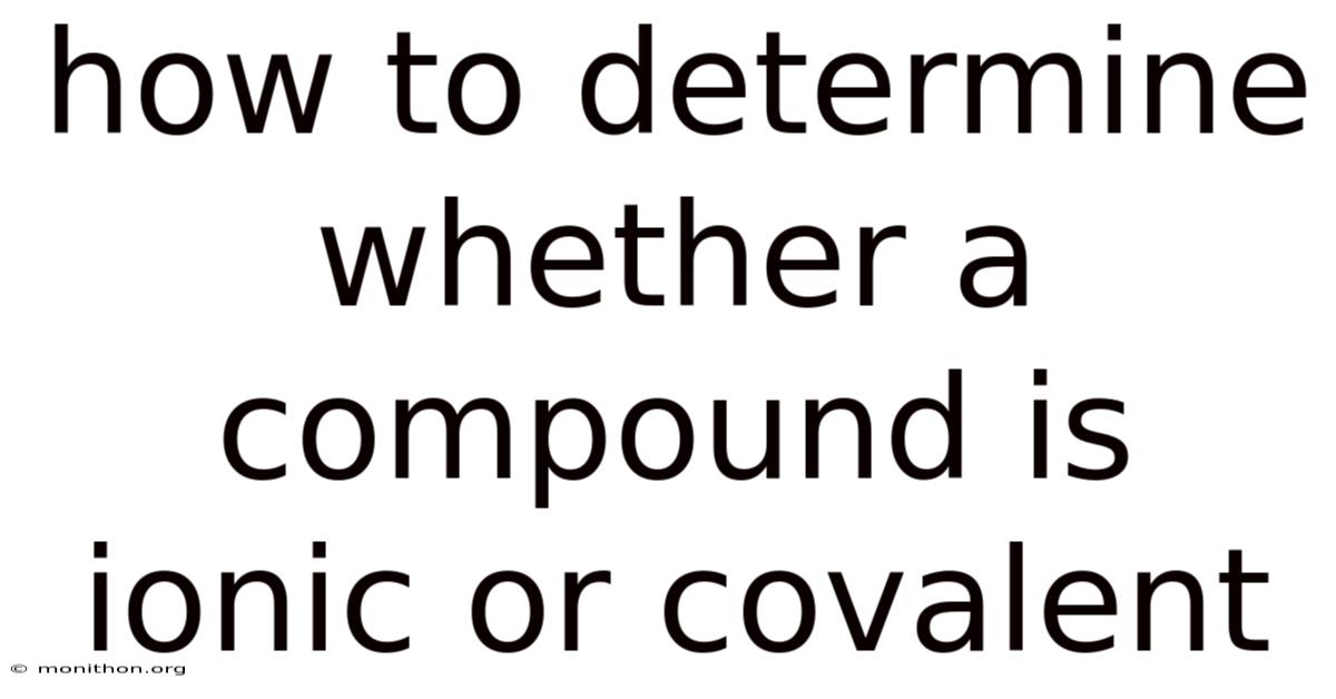 How To Determine Whether A Compound Is Ionic Or Covalent