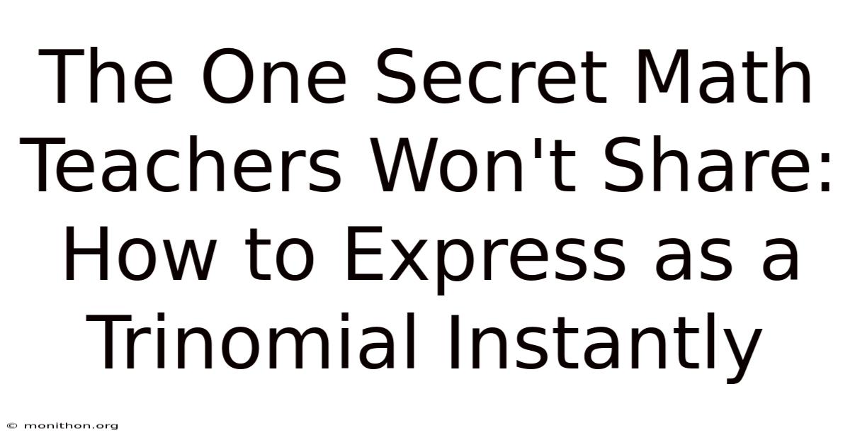 Okay, real talk. A trinomial is just a polynomial with three terms. That’s it. No magic. Usually, in high school algebra, we’re talking about a quadratic trinomial—something that looks like ax² + bx + c. The “express as” part means you’re taking some other algebraic expression—often a product of two binomials like (x + 3)(x – 2)—and you’re rewriting it in that standard three-term form Worth keeping that in mind..