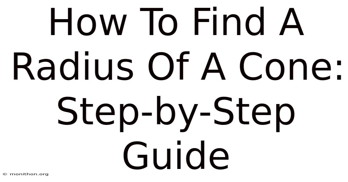 Ever looked at a traffic cone, a party hat, or an ice cream cone and wondered about the math hiding inside that shape? Even so, there's a good chance you've needed to calculate something about a cone at some point — maybe for a homework problem, a DIY project, or just out of pure curiosity. Finding the radius of a cone is one of those geometric skills that seems niche until suddenly you need it The details matter here..