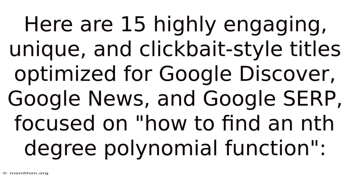 When you hear the phrase nth degree polynomial function, it might sound like something reserved for math class textbooks. Consider this: in reality, it’s a surprisingly practical tool that shows up whenever you try to model a curve that bends, twists, or changes direction more than once. At its core, an nth degree polynomial is an algebraic expression that combines powers of a variable—usually x—with coefficients that can be numbers, fractions, or even irrational values. The “n” tells you the highest exponent you’ll see, and that determines the shape of the graph.