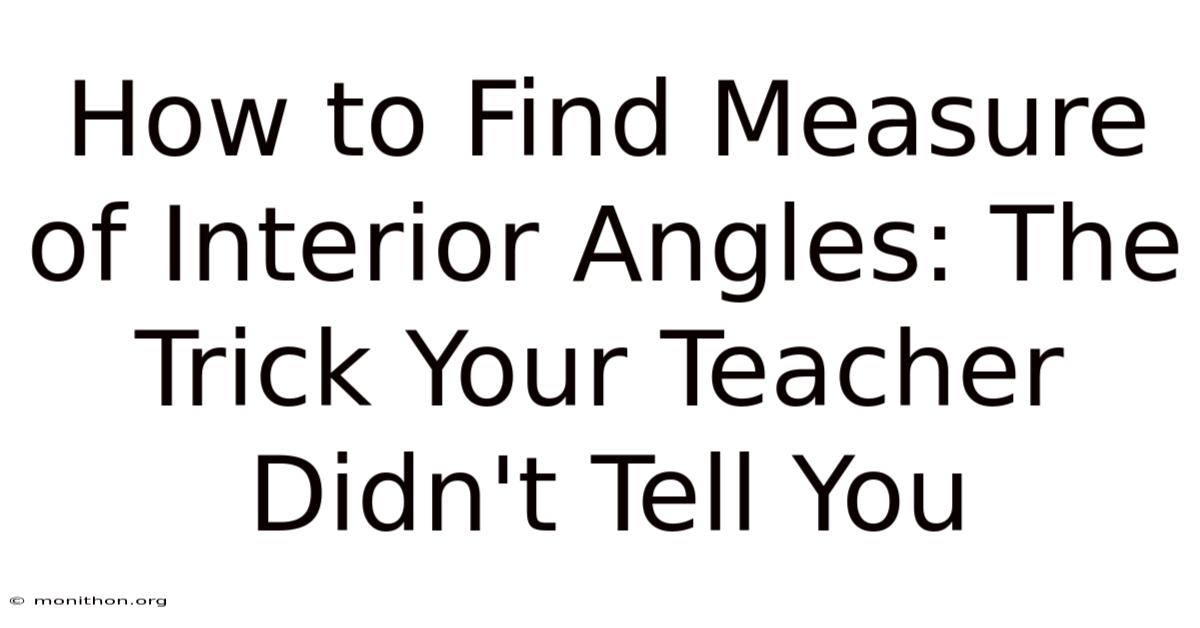 You’ve probably stared at a floor plan or traced the edge of a pizza slice and wondered how many degrees that corner actually spans. In geometry, an interior angle is simply the space formed where two sides of a shape meet inside the figure. That curiosity is the first step toward mastering the measure of interior angles. When you look at a triangle, a pentagon, or even a stop sign, each corner holds an angle that can be measured, compared, and sometimes predicted without a protractor Practical, not theoretical..