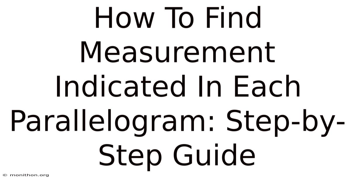 You’ve probably stared at a geometry worksheet and felt that little tug of frustration when a problem asks you to “find the measurement indicated in each parallelogram.Also, once you strip away the noise and lean on a few core ideas, the mystery evaporates. The good news? ” It sounds simple, until you realize the diagram is packed with overlapping shapes, hidden angles, and a handful of numbers that seem to dance around the page. In this guide we’ll walk through exactly what that phrase means, why it matters, and how you can tackle it without breaking a sweat.