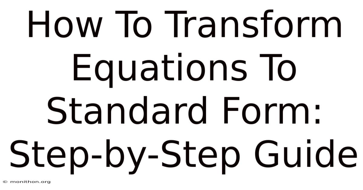 Many people approach equations with the expectation of finding them instantly, only to discover they’re buried under layers of complexity. Even so, standard form, though seemingly straightforward, demands precision and attention to detail. But it’s not just about rearranging terms; it’s about ensuring clarity, consistency, and correctness. Day to day, whether you’re a student, a professional, or someone simply curious about mathematics, understanding how to transform equations into standard form can be a big shift. This process acts as a bridge between confusion and comprehension, allowing individuals to figure out mathematical challenges with greater confidence. The key lies in recognizing the purpose behind standard form and applying the right techniques to achieve it effectively.