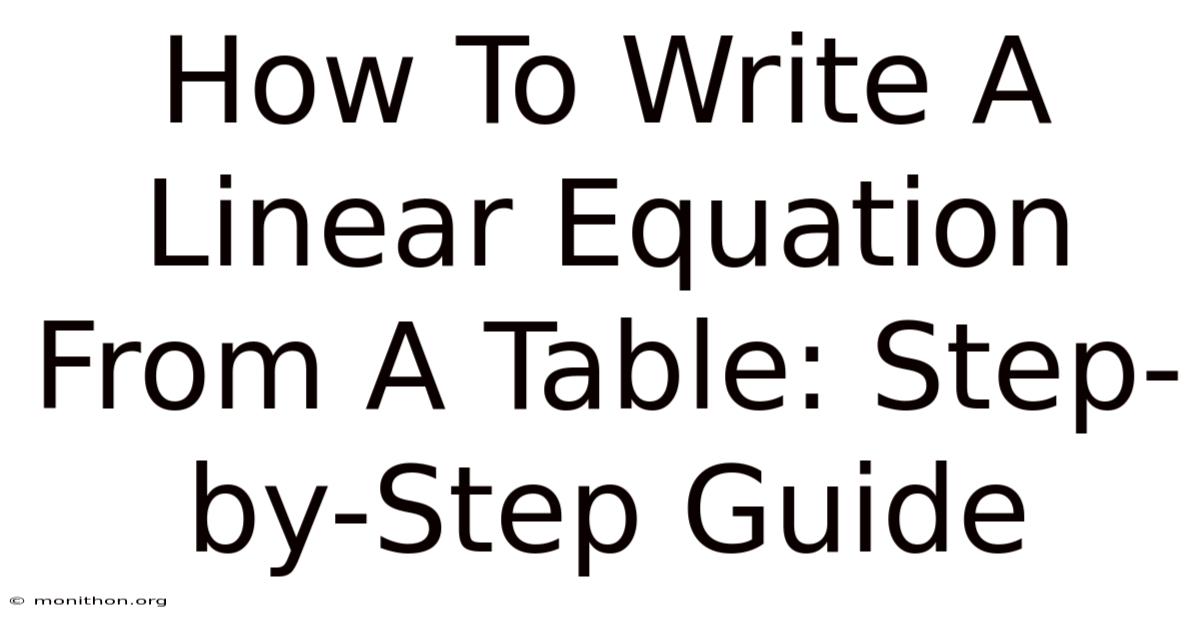 Being able to write a linear equation from a table is more than just a math exercise—it’s a practical skill. So whether you’re analyzing costs, predicting trends, or modeling real-world scenarios, this process helps you turn raw data into a usable formula. Once you have the equation, you can make predictions, spot anomalies, and even extrapolate beyond the given data.