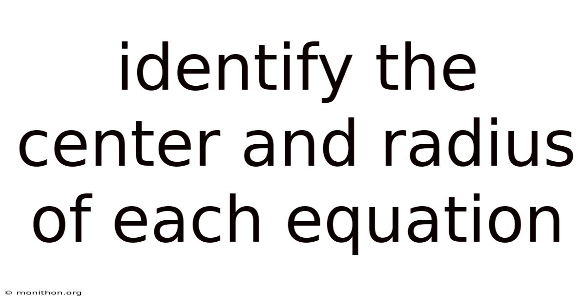 Identify The Center And Radius Of Each Equation
