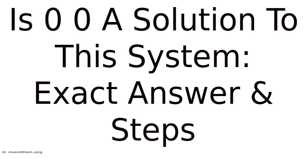 Ever stare at a pair of equations and wonder whether the origin—(0, 0)—actually satisfies them? Maybe you’ve seen a textbook problem that asks, “Is (0, 0) a solution to the system?But ” and you’re not sure how to answer without grinding through the algebra. Practically speaking, you’re not alone. In practice, checking the origin is a quick sanity check that can save you a lot of wasted work, especially when the system looks messy. Let’s walk through what it means, why you should care, and how to verify it without pulling your hair out Easy to understand, harder to ignore. Still holds up..