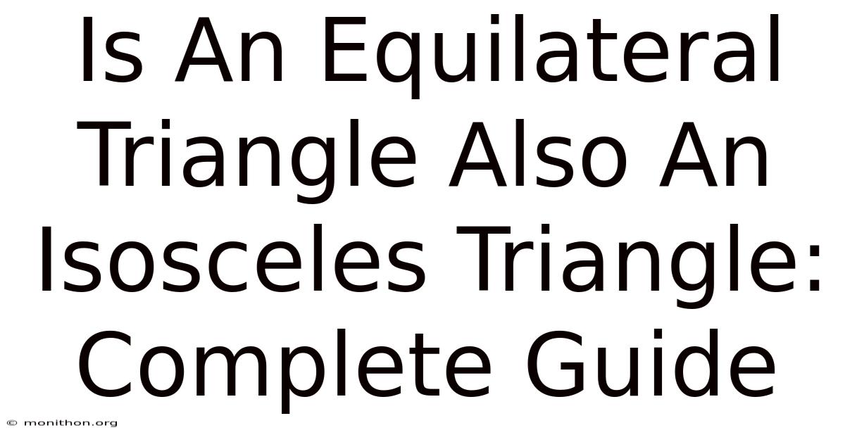 When you're diving into geometry, you might find yourself asking a question that seems simple at first but gets a lot more interesting when you break it down. At first glance, it feels straightforward. The classic question is: is an equilateral triangle also an isosceles triangle? But the truth is a bit more nuanced. Let’s explore this together, and I’ll make sure you leave with a clear understanding Small thing, real impact..
