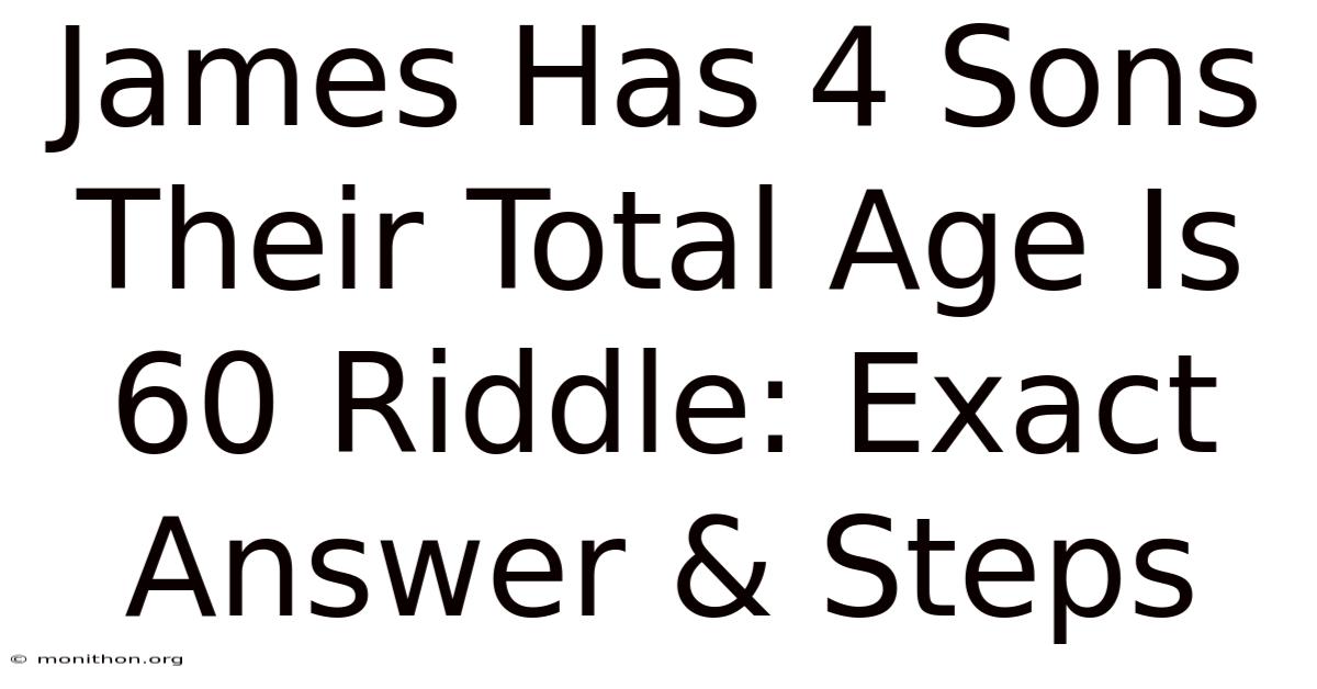 Riddles like “James has four sons, their total age is 60” remind us that the devil—or the delight—is in the details. The next time you encounter a similar brain‑teaser, pause, read the words twice, and let the hidden clue guide you to the answer. A single phrase can change a simple arithmetic puzzle into a mind‑bender. Happy puzzling!