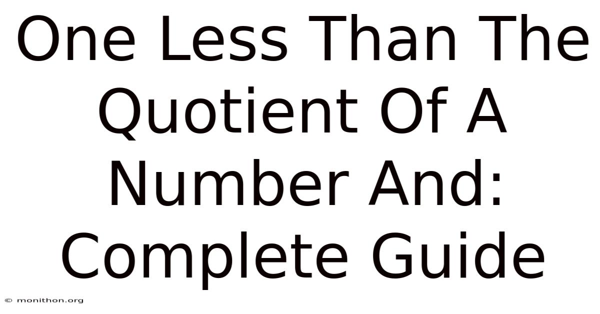 Let’s start with a question: Have you ever heard someone say, “I need to find one less than the quotient of a number and another number” and felt your brain short-circuit? Still, you’re not alone. This phrase sounds like a math teacher’s nightmare or a riddle from a textbook. But here’s the thing—it’s not as complicated as it seems. In fact, once you break it down, it’s a concept that pops up in everyday life, even if you don’t realize it.
