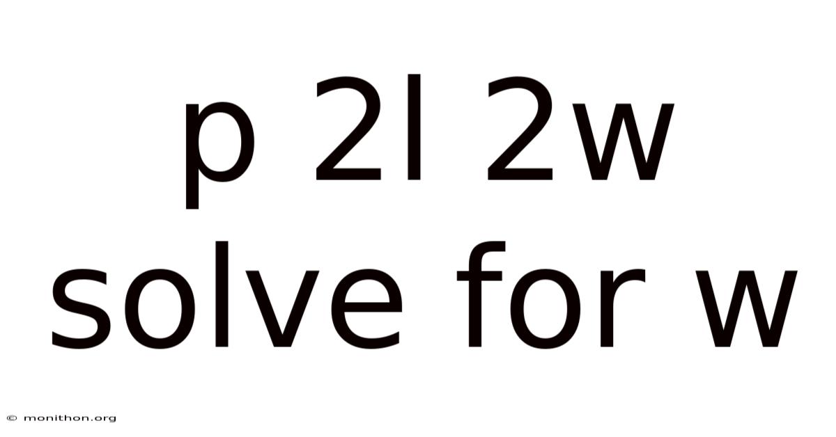 When you encounter the expression p 2l 2w, you are most likely looking at the standard formula for the perimeter of a rectangle. The perimeter (p) is the total distance around the shape, calculated by adding together the lengths of all four sides. In a rectangle, opposite sides are equal, so the formula simplifies to p = 2l + 2w, where l represents the length and w represents the width. This article walks you through the process of isolating w (the width) in that equation. By the end, you will not only know how to solve for w, but you will also understand why each algebraic step works, see real‑world applications, and feel confident tackling similar problems.