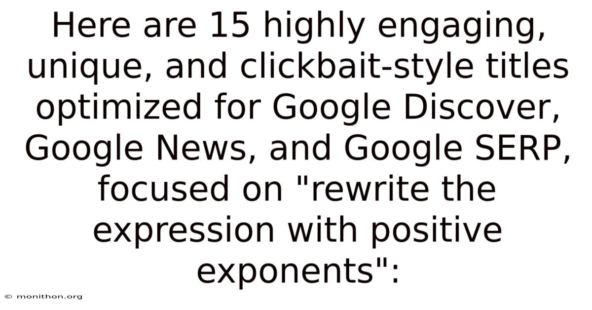 Imagine a world where complexity dissolves into clarity, where abstract concepts gain tangible meaning. Whether you're a student grappling with equations or a professional navigating data analysis, the ability to manipulate positive exponents effectively can transform challenges into opportunities. This is the essence of rewriting expressions with positive exponents—a practice that transcends mere mathematical precision, offering insights into patterns, efficiency, and deeper understanding. Now, it’s not just about numbers; it’s about unlocking a gateway to greater comprehension and application. Day to day, in this journey, we’ll explore how mastering this skill can refine problem-solving approaches, enhance computational accuracy, and reveal hidden connections within seemingly disparate fields. The process demands patience, precision, and a willingness to embrace the nuances that positive exponents introduce. Yet, for those who approach it with care, the rewards are profound, reshaping their perspective on both theory and practice That's the whole idea..