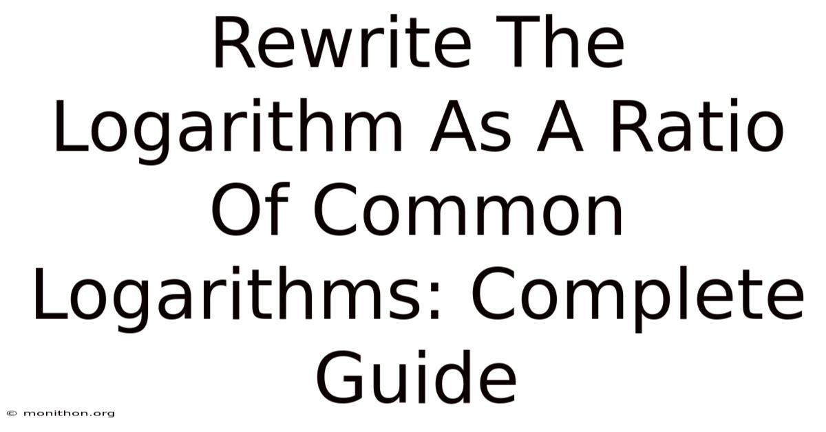 When mathematicians talk about rewriting a logarithm as a ratio of common logarithms, they're referring to the change of base formula. This is a property that lets you convert a logarithm from any base into a fraction made up of base-10 logarithms (also called common logarithms) Simple, but easy to overlook..