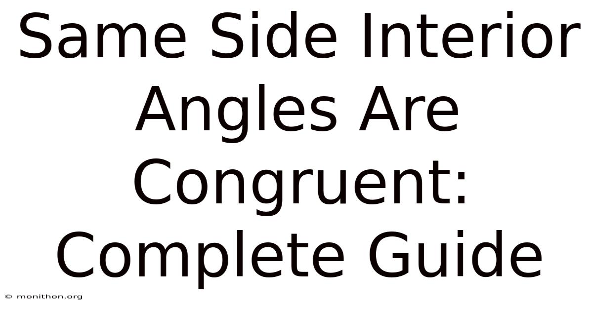 So there you have it: the why, the how, the common traps, and the real‑world tricks for mastering same‑side interior angles are congruent. Next time you sketch a diagram, you’ll spot those matching angles instantly, and you’ll have a solid proof ready to go. Geometry becomes less about memorizing and more about seeing the pattern—exactly the way it’s meant to be. Happy angle hunting!
