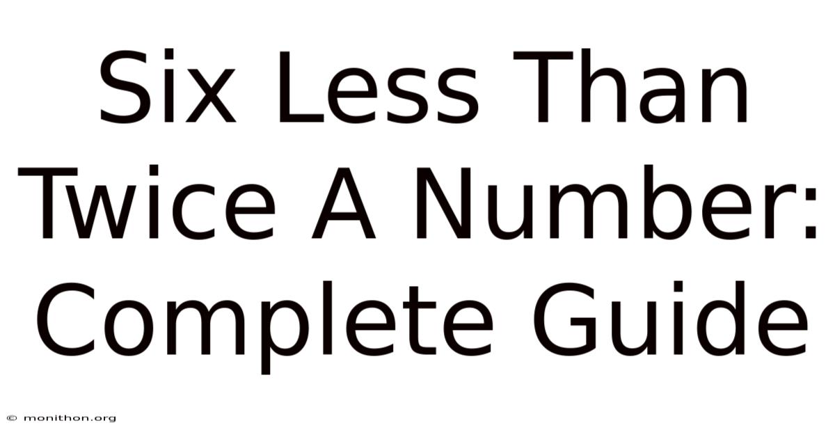 Six less than twice a number involves a straightforward calculation. Imagine a scenario where one seeks to adjust a value by subtracting six from double some integer. This process demands precision, as errors can cascade quickly. The process itself is simple yet crucial, requiring focus to avoid mistakes. Each step must be executed carefully, ensuring accuracy remains very important. Such attention ensures the result aligns with expectations That's the part that actually makes a difference..
