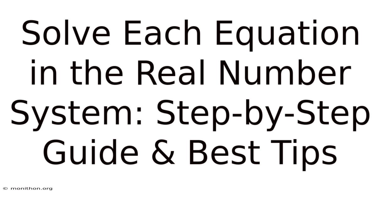 Solve each equation in the real number system is a fundamental skill that underpins much of algebra, calculus, and applied mathematics. When we talk about solving an equation, we are looking for all real numbers that make the statement true, and we must respect the properties of the real numbers—such as closure under addition and multiplication, the existence of additive and multiplicative inverses, and the ordering that allows us to compare sizes. This article walks through the main categories of equations you will encounter, explains the reasoning behind each solution method, highlights common mistakes, and provides practice problems to reinforce your understanding Worth keeping that in mind..
