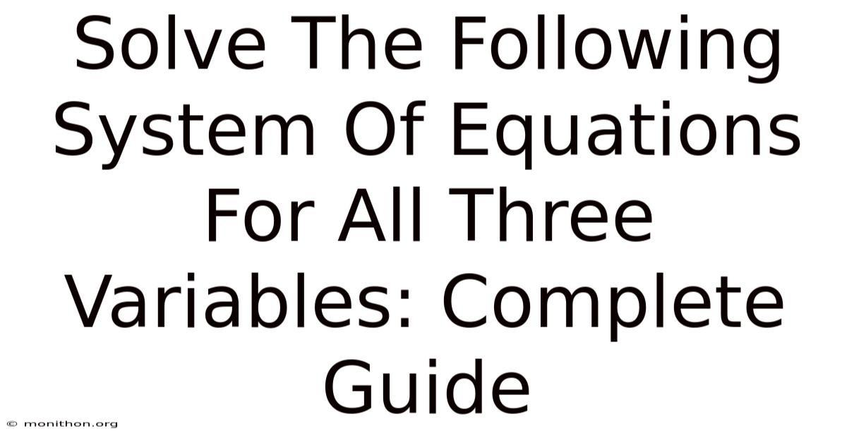 You’re staring at a page of algebra, and the prompt just says solve the following system of equations for all three variables. It looks like a tangle of x’s, y’s, and z’s, but here’s the thing — it’s not a puzzle meant to trap you. Day to day, it’s just a methodical process. But once you know how to peel back the layers, the whole thing clicks into place. I’ve watched students overcomplicate this for years. They treat it like advanced calculus when it’s really just organized bookkeeping That's the part that actually makes a difference..