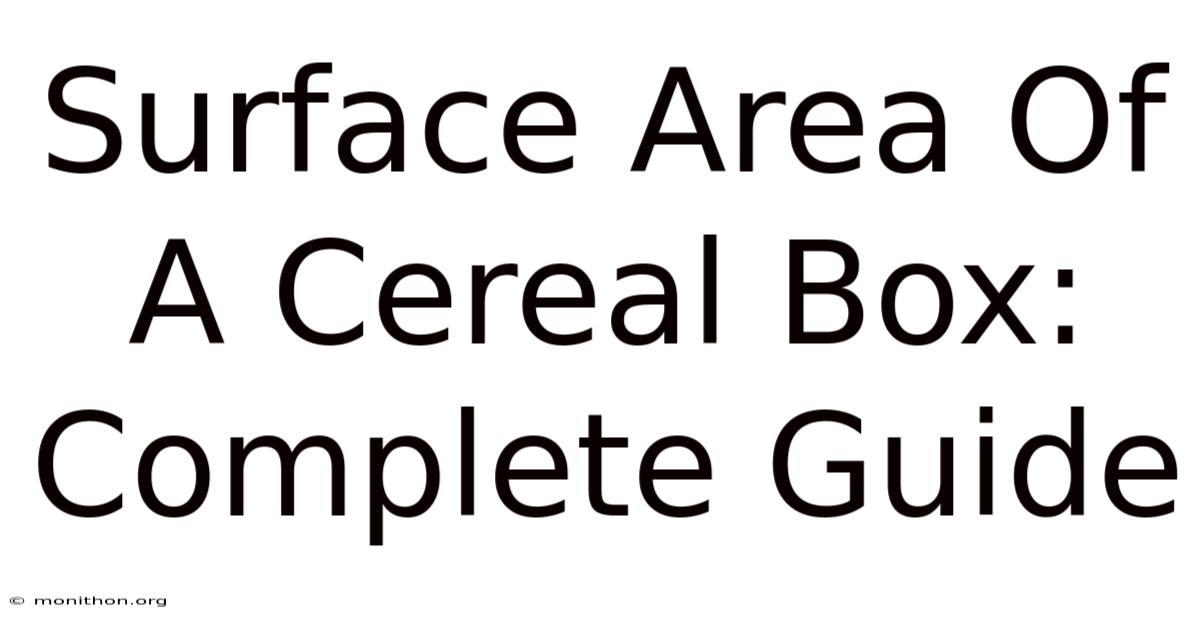 Surface area refers to the total area exposed to the environment, which in the case of a cereal box means every inch that contacts air, water, or other substances. For a rectangular box, this translates to calculating the sum of all sides facing outward. And while it might seem straightforward, the way we approach this calculation can reveal unexpected nuances. Consider a standard cereal box: its dimensions might be 10 cm by 15 cm, but if it’s a cube, the surface area would differ significantly. Day to day, these variations aren’t just numerical differences; they influence how the box interacts with its surroundings. A larger surface area could mean higher shipping costs, while a smaller one might suggest efficiency. Yet, beyond these practical considerations, surface area also ties into material usage. A box with a larger surface area might require more cardboard or plastic, adding to its environmental footprint. This interplay between size, material, and function makes surface area a multifaceted concept that deserves careful attention.