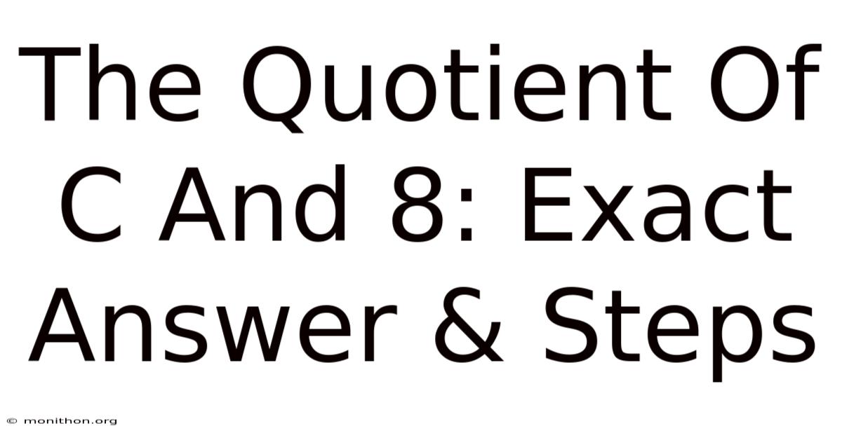 When people skip this step, they guess. And guessing in math compounds quickly. Misread one phrase, and suddenly your answer for a rate problem, a scaling recipe, or a simple algebra test is off by a factor of eight. Real talk: most students don’t fail algebra because they can’t calculate. They fail because they can’t decode the question. Mastering how to read “the quotient of c and 8” trains your brain to spot patterns, respect order, and trust the structure before you ever pick up a calculator Simple, but easy to overlook..