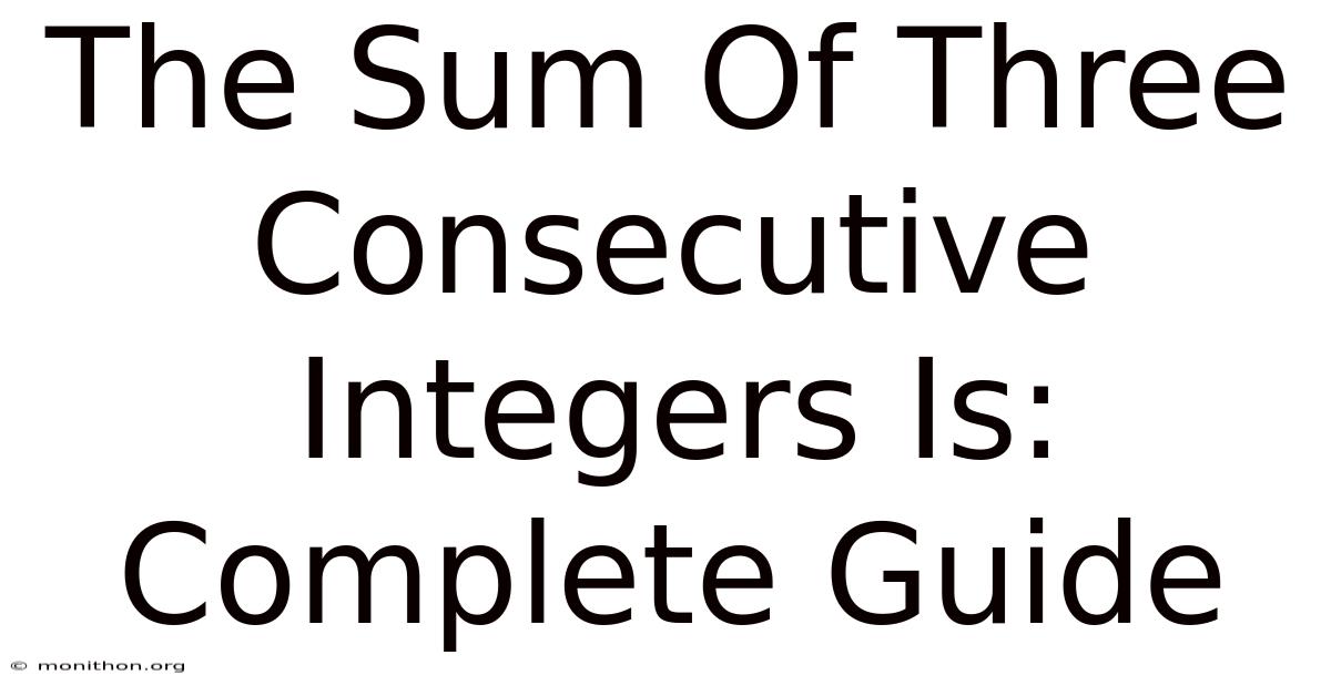 So the next time someone asks you for “the sum of three consecutive integers”, you can answer with confidence: add the three numbers, factor out the 3, and you’ll see it’s just three times the middle value. If you’re given a sum and need the actual integers, check that the sum is divisible by 3, divide, subtract one, and you’ve got the whole set That's the whole idea..