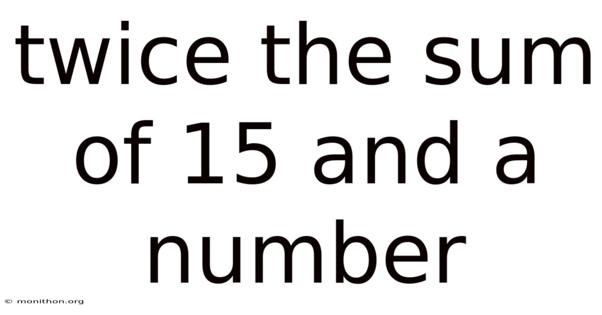 Twice the sumof 15 and a number is a simple yet powerful algebraic expression that appears in many everyday calculations, from budgeting to engineering formulas. In this article we will explore what the phrase means, how to translate it into a mathematical statement, step‑by‑step methods for solving it, and real‑world contexts where understanding this concept can give you a clear advantage. By the end, you will be able to handle similar problems with confidence and avoid common pitfalls that trip up many learners.