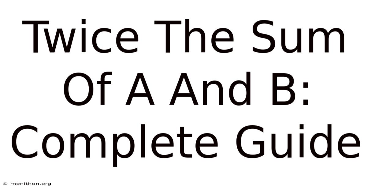 When all is said and done, the enduring value of "twice the sum of a and b" lies not just in the calculation itself, but in the foundational understanding it provides. Plus, the journey to mastery is ongoing, but the initial steps – understanding the concept, practicing its application, and recognizing its broader significance – are crucial for unlocking its full potential. It's a microcosm of how seemingly simple mathematical relationships underpin complex systems and offer a powerful framework for problem-solving. By fostering a genuine appreciation for this principle, we empower ourselves to figure out the world with greater confidence and analytical acuity. Let us embrace this fundamental building block of mathematical thought and take advantage of its power to explore, innovate, and solve the challenges of tomorrow.