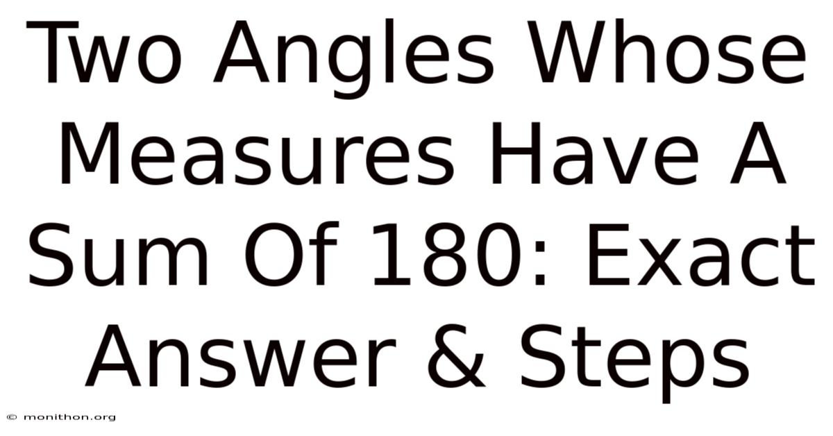 Picture a straight line drawn across a page. That's why if you place a point somewhere on that line, you can split the line into two rays that point in opposite directions. The angles that open up from that point, one on each side of the line, are called supplementary angles. In plain terms, “two angles whose measures have a sum of 180°” means that if you add the degree values of those two angles together, you always get a perfect half‑circle. It’s a basic rule of Euclidean geometry that’s true wherever straight lines exist—on a paper, on a road, or even in the sky Which is the point..