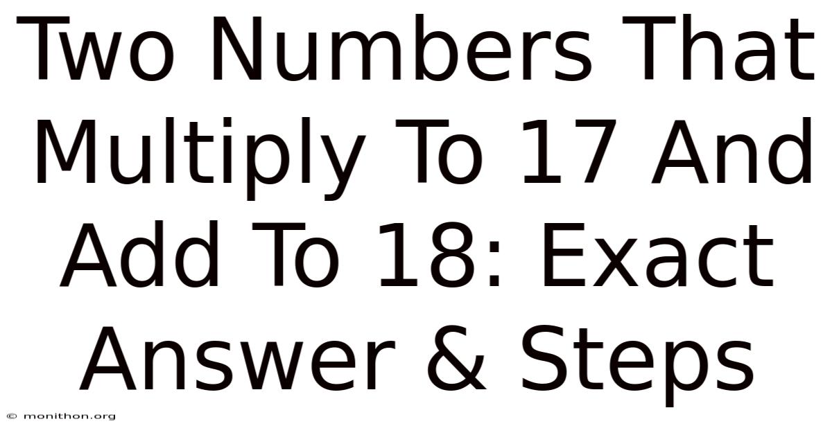 At first glance, it feels like a trick question. But that pair adds up to 18, so it does work! 17 is a prime number, so you might assume the only integer pair that multiplies to 17 is (1, 17). The puzzle becomes more interesting when you consider non‑integer solutions or think about the general method for any product and sum.