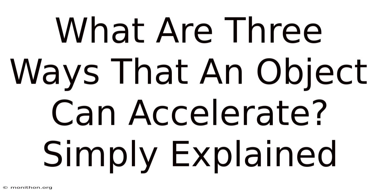 We mostly think of acceleration as “going faster.Worth adding: knowing them changes how you see everything—from driving to sports to the planets orbiting the sun. And When it comes to this, exactly three ways stand out. ” But in physics, it’s so much more. Here's the thing — it’s any change in how you’re moving. Let’s break it down Surprisingly effective..