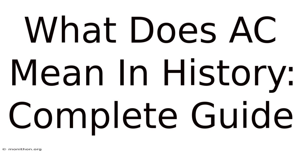 A: In historical contexts, it’s almost always a date label. Outside of history, “AC” can mean “alternating current” or “air conditioning,” but those meanings are unrelated to chronology Simple as that..