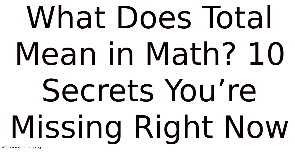 Have you ever wondered why totals are so important in math? And it’s the final sum you get after adding, subtracting, multiplying, or dividing. But it’s not just about numbers—it’s about aggregation. Let me break it down for you. Whether you’re adding up your grocery bill or calculating your test score, totals are everywhere. Which means at its core, a total is the result of combining numbers or quantities. But what exactly does "total" mean in math? A total can represent anything that’s being combined, from money to data points to even abstract concepts like energy or time.