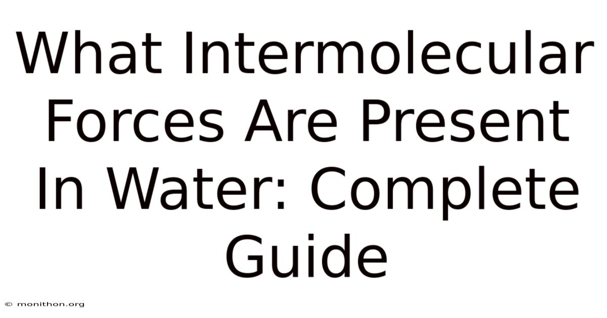 Is hydrogen bonding the only intermolecular force in water? No. Water also experiences dipole-dipole interactions and London dispersion forces. Hydrogen bonding is just the strongest and most dominant player.