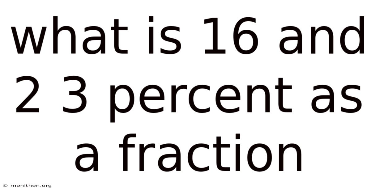 The phrase "16 and 2 3 percent" can be interpreted as 16 2/3 percent. This is a mixed number, where 16 is the whole number and 2/3 is the fractional part. To convert this into a fraction, we need to combine the whole number and the fraction into an improper fraction.
