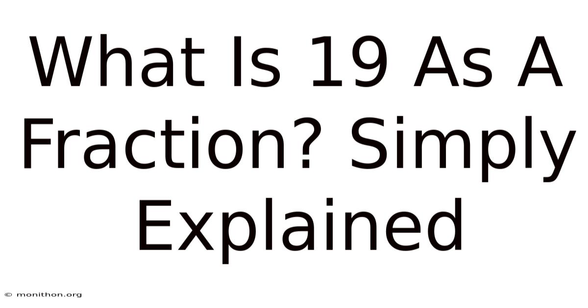 So there you have it. 19 as a fraction isn’t a mysterious beast—it’s simply 19 / 1, and from there you can stretch, shrink, or reshape it to fit any problem you’re tackling. Consider this: the next time a worksheet asks for “19 as a fraction,” you’ll know exactly what to write, why it works, and how to adapt it when the situation calls for something a little less straightforward. Happy calculating!