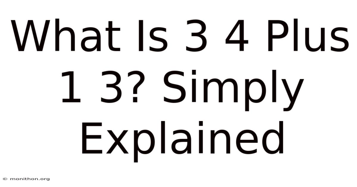 What is 3/4 plus 1/3 in simplest form? It’s 13/12, which converts to the mixed number 1 1/12. You can’t reduce it further because 13 is a prime number and doesn’t share factors with 12 Worth keeping that in mind..