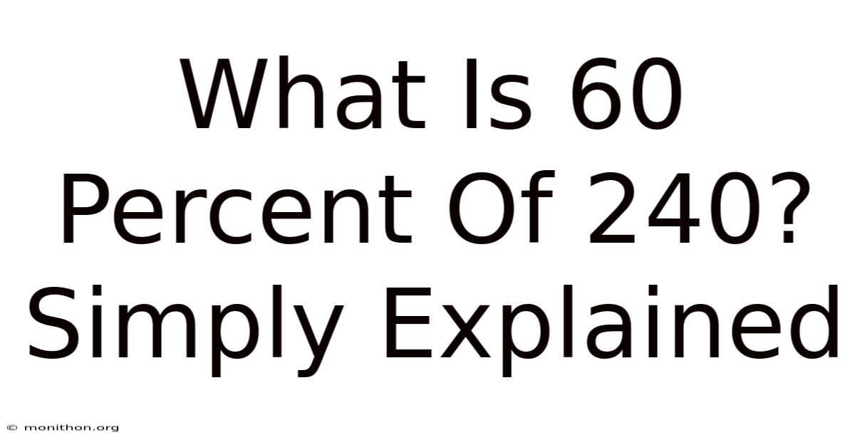 Let’s strip away the classroom jargon for a second. When someone asks what is 60 percent of 240, they’re really asking you to slice a whole into manageable pieces. That said, sixty percent means 60 parts out of every 100. So if 100 percent of something equals 240, then 60 percent is just a little more than half of that total. In practice, it’s 144 Not complicated — just consistent..