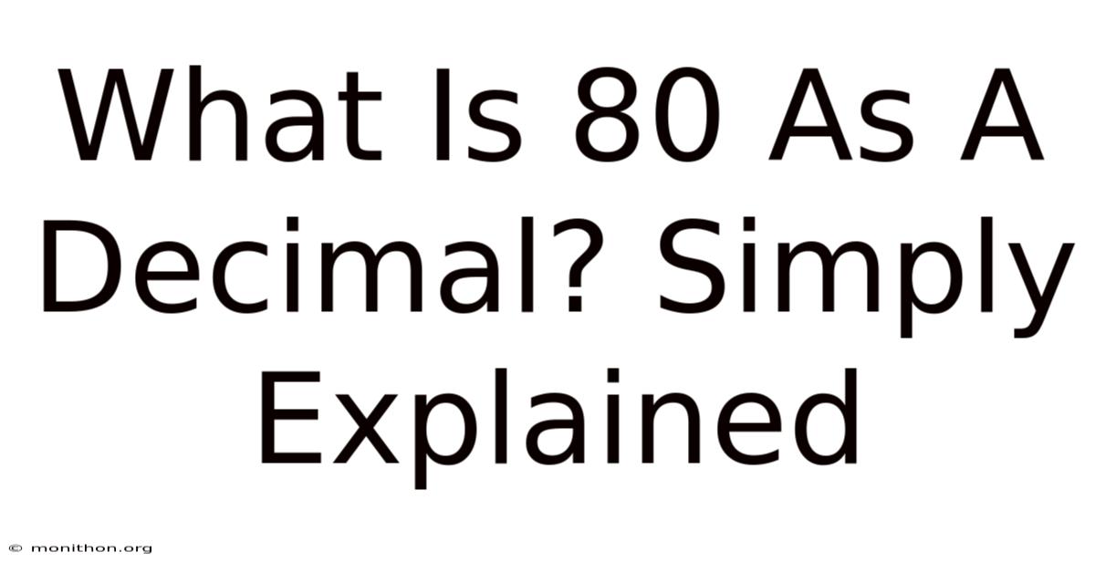 Here's a number that shows up everywhere: in sales ads, test scores, statistics, and probability. But when someone asks "what is 80 as a decimal?", there's actually a bit more to unpack than you might think. The answer isn't just a single number — it depends on what you're converting from The details matter here..