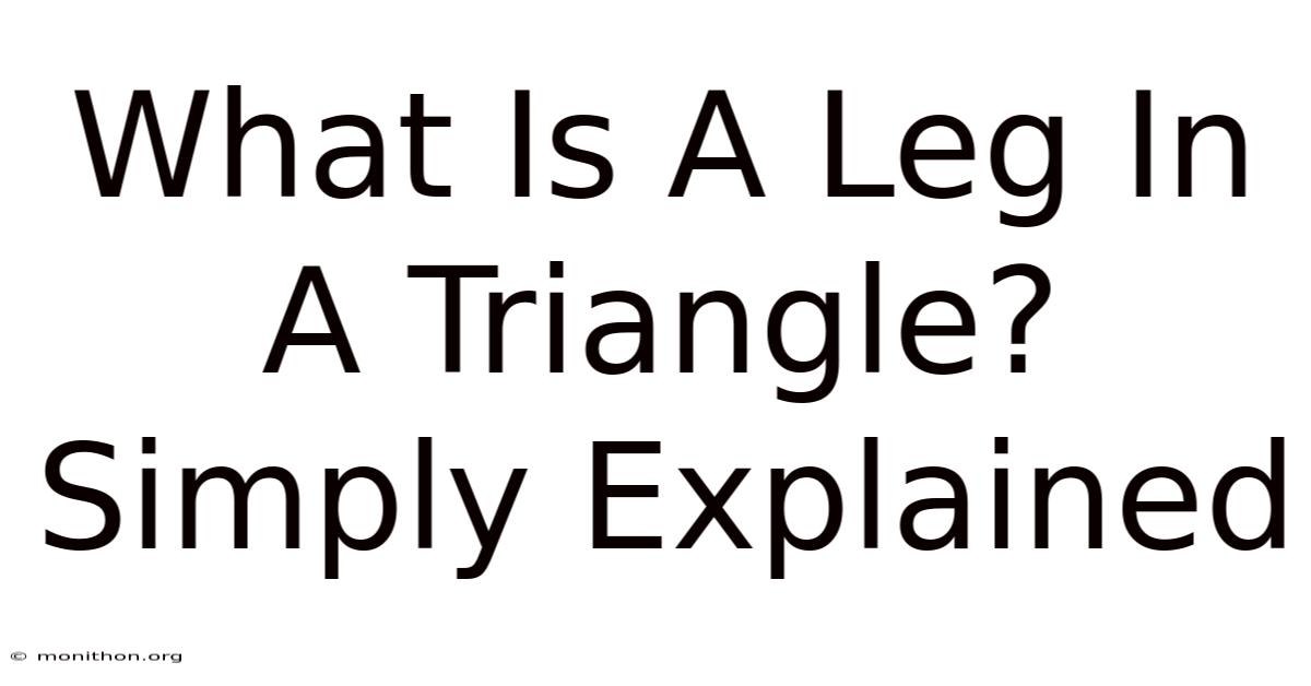 Ever wondered why your triangle sandwich has a “leg”? No, not the meaty part—we’re talking geometry here! That said, in math, a “leg” in a triangle refers to one of the two sides that form the right angle in a right triangle. But confused? Don’t worry—you’re not alone. Worth adding: this concept is simpler than it sounds, and once you grasp it, you’ll see how it pops up everywhere, from pizza slices to architecture. Let’s break it down.