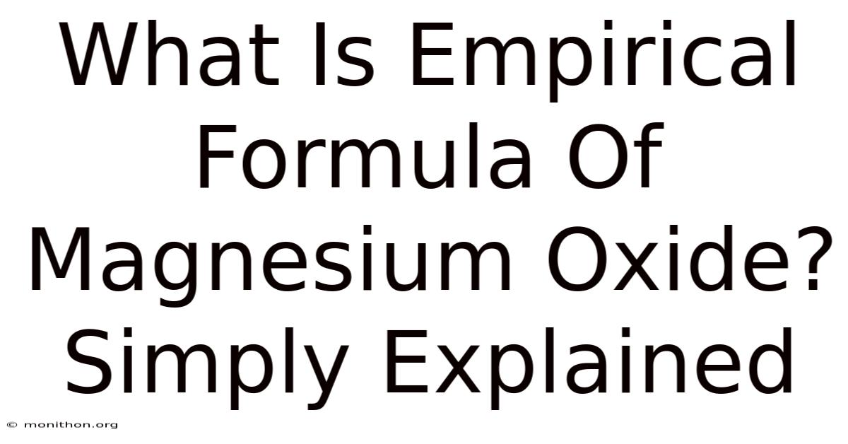 At its simplest, an empirical formula is a way to express the proportion of atoms in a compound using whole numbers. For magnesium oxide, this means determining how many magnesium atoms are paired with each oxygen atom. Worth adding: the term “empirical formula” often confuses beginners, but it’s the cornerstone of stoichiometry, allowing chemists to predict reactivity, stability, and reactivity patterns. Take magnesium oxide, for instance: its formula, MgO, suggests one magnesium atom for every one oxygen atom. Because of that, yet, this isn’t always straightforward—what if elements don’t combine in simple ratios? So or if prior knowledge of similar compounds complicates things? The key lies in systematic analysis, whether through experimentation or theoretical modeling No workaround needed..