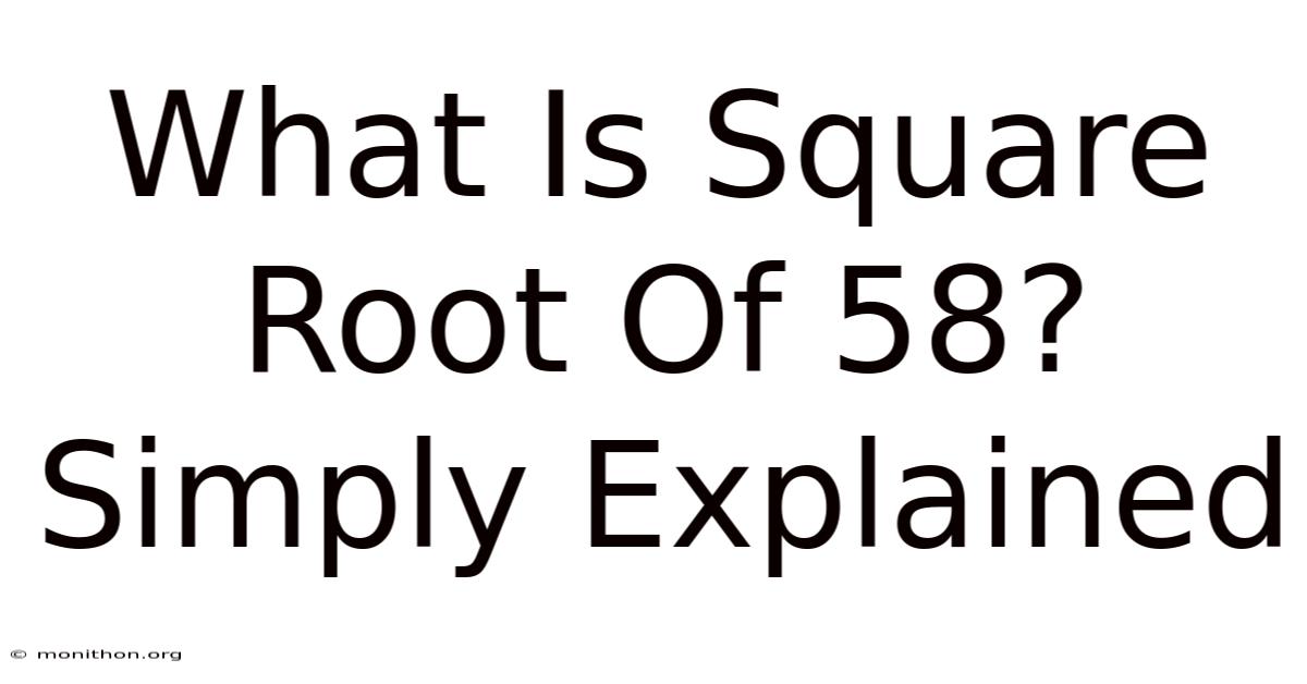 Here’s the thing—the square root of 58 is a perfect example of the messy, beautiful reality of numbers. Still, 58 is just one of the crowd. Most of the numbers we use every day are irrational. Their square roots don’t end, don’t repeat, and just… keep going. It’s not a celebrity number like π or e, but it does something quietly important: it reminds us that not everything in math tidies up neatly. But understanding it? That’s a window into how we actually work with numbers that refuse to be simple It's one of those things that adds up..