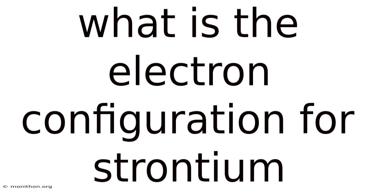Here, [Kr] represents the electron configuration of krypton (1s² 2s² 2p⁶ 3s² 3p⁶ 4s² 3d¹⁰ 4p⁶). Adding the two 5s electrons completes the picture for strontium.
