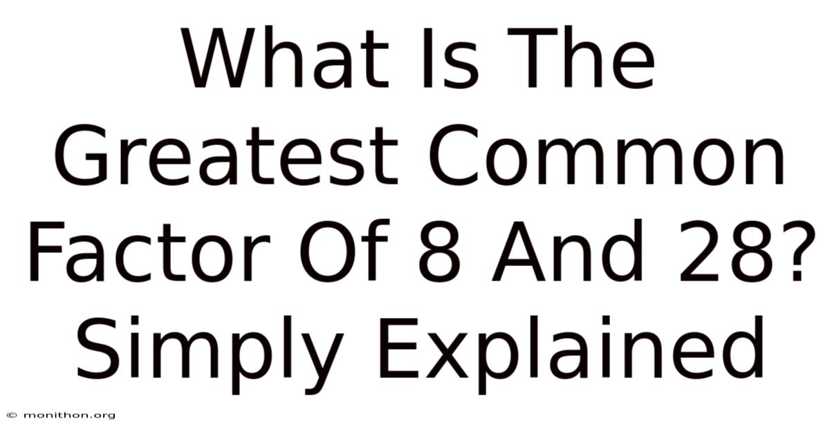 What is the greatest common factor of 8 and 28? So it’s 4. That’s the largest whole number that divides into both 8 and 28 without leaving a remainder Nothing fancy..