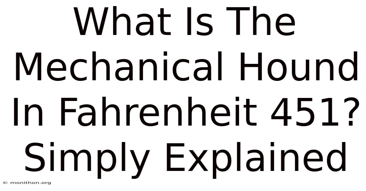 In plain English, the Mechanical Hound is a government‑built, cybernetic police dog that roams the city hunting down anyone who dares to keep a book. Think of it as a blend between a police K‑9 unit, a thermostat, and a sci‑fi nightmare. It’s not a living creature; it’s a metal‑cased, programmable “hound” that can sniff out the scent of a human’s fear and the chemical signature of a burned‑book outlaw.
