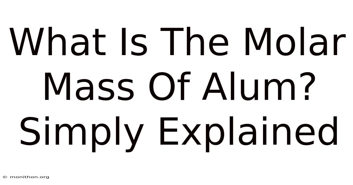 Understanding the molar mass of alum isn't just about memorizing a number—it's about mastering a fundamental skill in chemistry. Whether you're in a classroom or a lab, getting this right opens the door to accurate experiments and deeper understanding. Next time you see alum on a problem set, you'll know exactly what to do Easy to understand, harder to ignore. Less friction, more output..