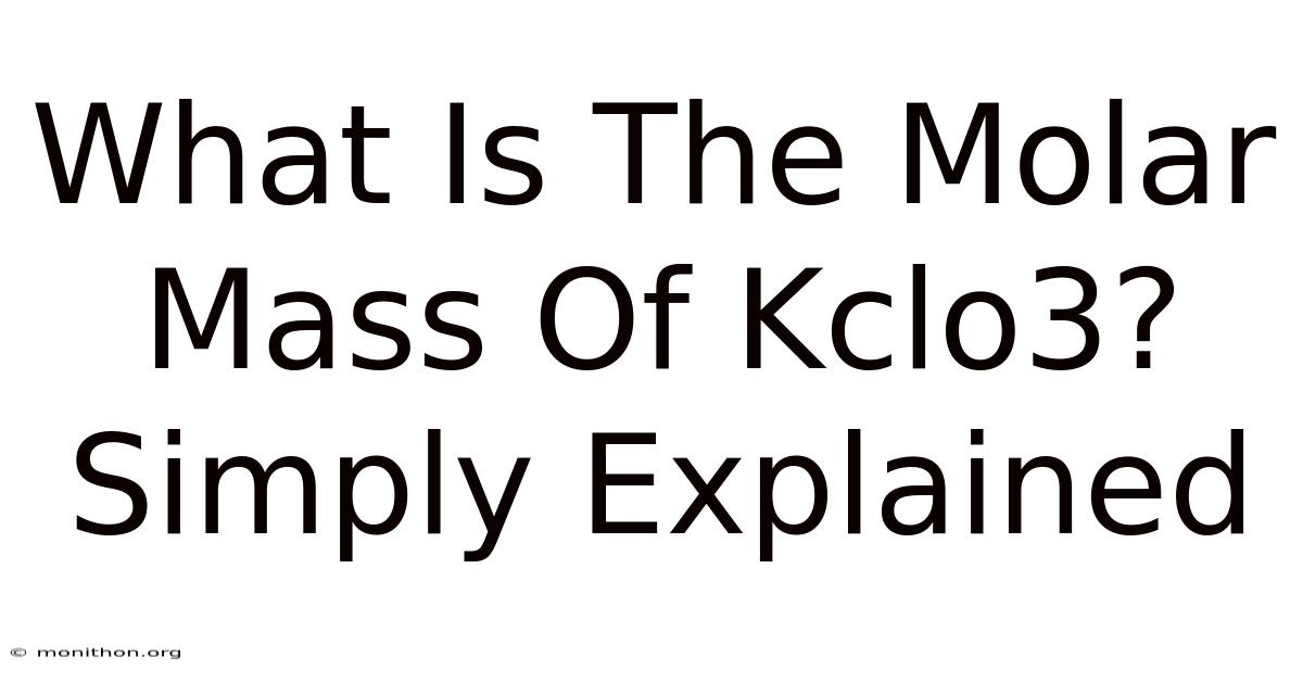 So, the molar mass of KClO₃ tells you how many grams one mole of that compound weighs. It’s a simple arithmetic sum of the atomic masses of potassium (K), chlorine (Cl), and oxygen (O) in the formula, multiplied by their stoichiometric coefficients.