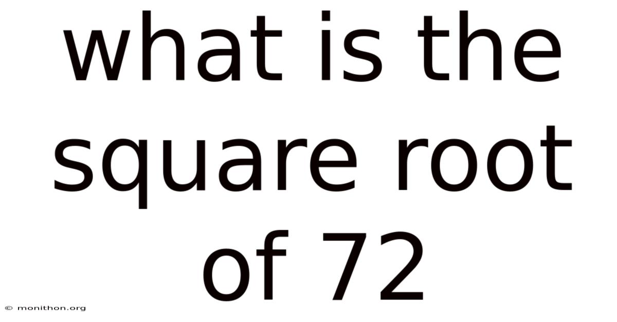 In conclusion, the square root of 72, while possessing a decimal approximation of approximately 8.485, is most elegantly represented in its simplified radical form of 6√2. This form not only provides mathematical precision but also underscores fundamental concepts in algebra, including the distinction between rational and irrational numbers, and the importance of simplifying radicals. From its theoretical significance in mathematical principles to its practical applications in geometry, physics, and finance, understanding and manipulating square roots like √72 is a cornerstone of quantitative reasoning and problem-solving. Mastering this concept equips individuals with a powerful tool for tackling complex challenges and interpreting the world around us with greater accuracy and insight. The journey from calculating a decimal approximation to simplifying the radical form reveals a deeper understanding of mathematical structure and the beauty of expressing concepts in their most concise and fundamental way.